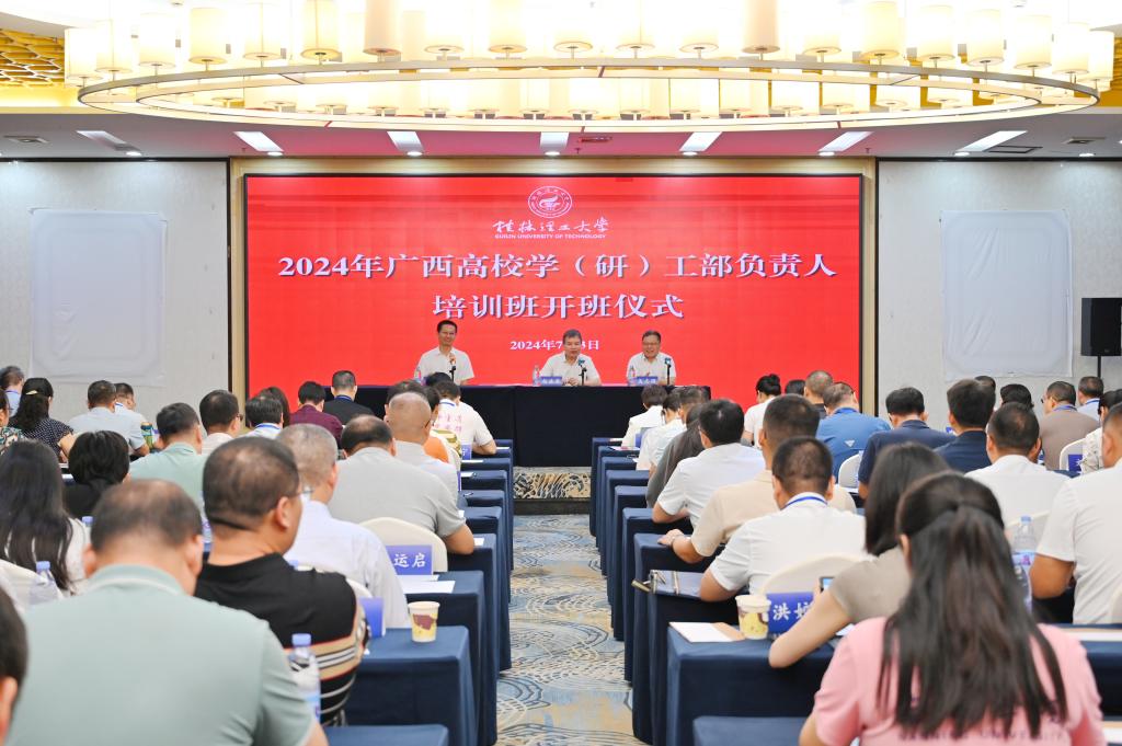 7月3日至6日,由自治區教育廳主辦、我校承辦的2024年廣西高校學(研)工部負責人培訓班在桂林舉行。自治區黨委教育工委宣傳部部長、教育廳思政處處長、二級巡視員趙益真,學校黨委副書記吳志強出席開班儀式,來自全區各高校的96名學(研)工部負責人參加培訓。