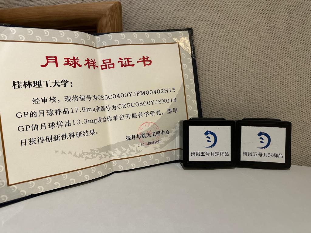 近日,我校隕石與行星物質研究中心副主任、地球科學學院青年教師夏志鵬博士從中國科學院國家天文臺領取了編碼為CE5C0400YJFM00402H15GP和CE5C0800YJYX018GP的兩份“嫦娥五號”月壤樣品,質量總計31.2毫克。我校成為廣西首個、也是廣西唯一獲得“嫦娥五號”月球科研樣品的高校。