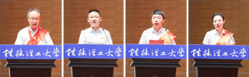 “光榮在黨50年”代表、離退休黨委牛秦洲,先進基層黨組織代表、土木工程學院黨委書記曾榕,優秀共產黨員代表、地球科學學院教師柴明春,優秀黨務工作者代表、物理與電子信息工程學院專職組織員夏琳作為先進典型代表發言,分享了在各自崗位上加強基層組織建設、立足崗位作奉獻、奮發有為當先鋒的經驗體會。