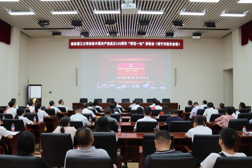 7月1日,學校在屏風校區圖書館報告廳召開慶祝中國共產黨成立104周年“兩優一先”表彰會。學校黨委書記農毅在會上講話。校黨委副書記、校長王敦球主持大會。在家校領導韋學敏、黎貞崇、羅盛鋒、唐壯東、曾繁榮,黨委常委葉昊、邱杰出席會議。各職能部門主要負責人,各二級黨委書記、專職組織員,全體受表彰黨員和基層黨組織負責人,黨支部書記、新黨員、離退休老黨員代表以及民主黨派代表參加會議。南寧分校設分會場。