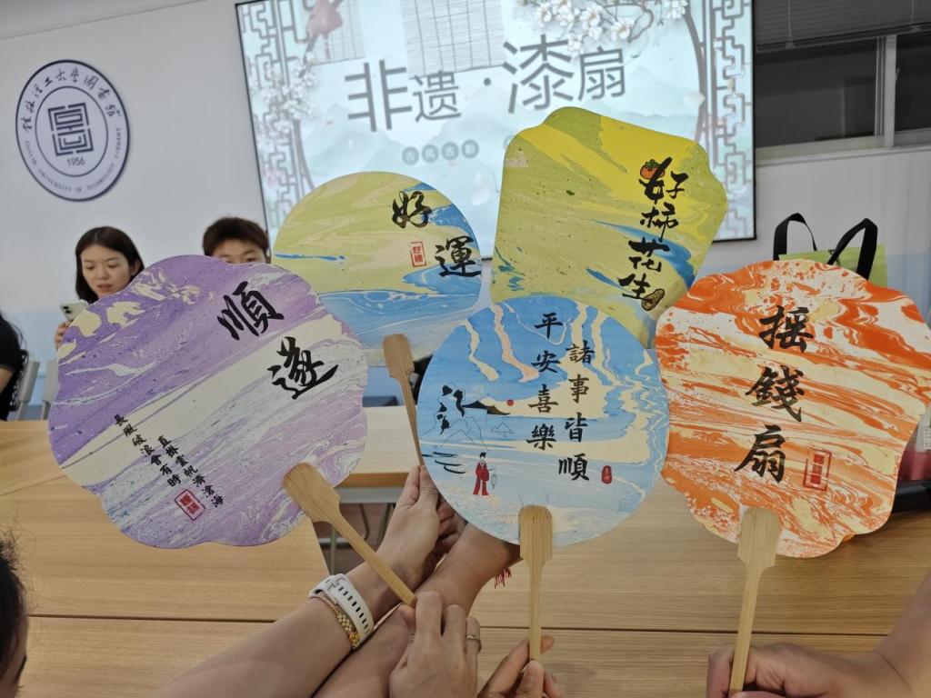 10月10日下午,學校屏風校區(qū)圖書館六樓讀者活動室內(nèi)氣氛熱烈,“漆韻新聲,扇繪青春”非遺漆扇體驗活動在此舉行。50余名非遺愛好者齊聚一堂,以素扇為紙、大漆為墨,親手復刻千年漆藝,在創(chuàng)意實踐中為古老工藝注入新活力。